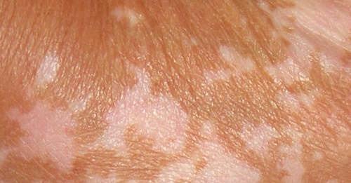 · manchas blancas: en la mayoría de los casos la causa son presencia de hongos en la piel, como la pitiriasis versicolor , también a la falta de vitaminas, especialmente la B12 y en otros casos es por tener vitiligo o enfermedad de la despigmentación.